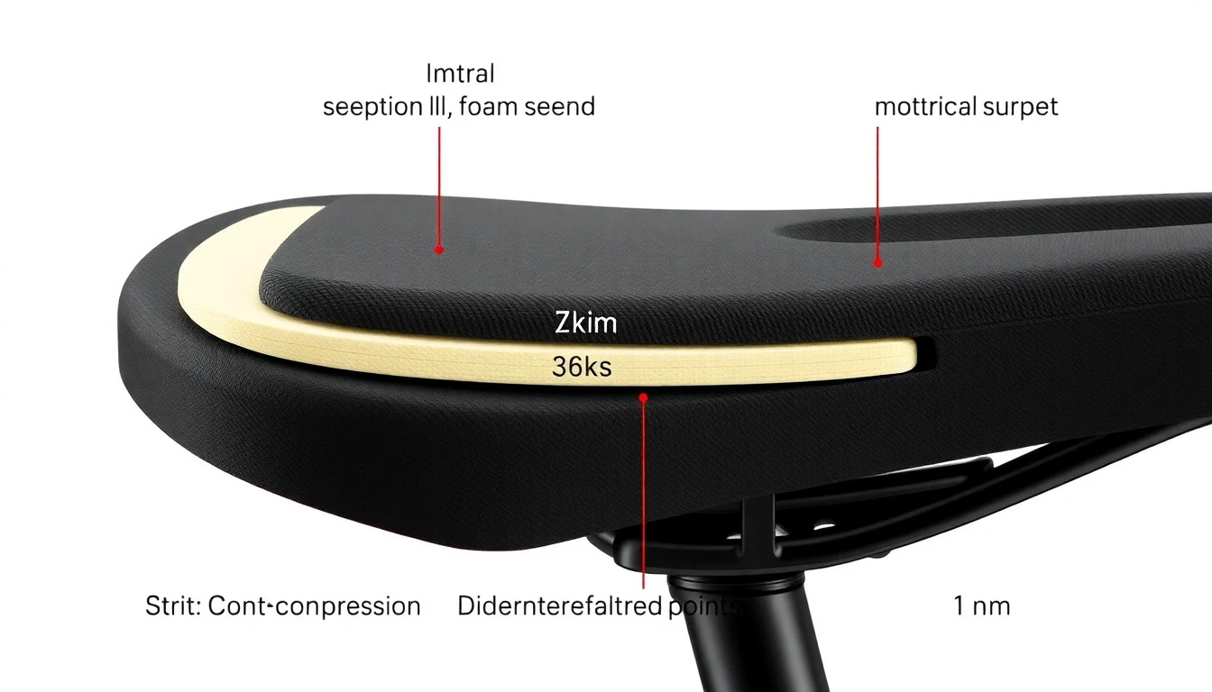 Sit bone zones get those 120 kg/m³ density inserts . Thickness goes from 13-14mm at max pressure points down to thinner edges. This pressure spread stops hot spots. It keeps blood flowing.
