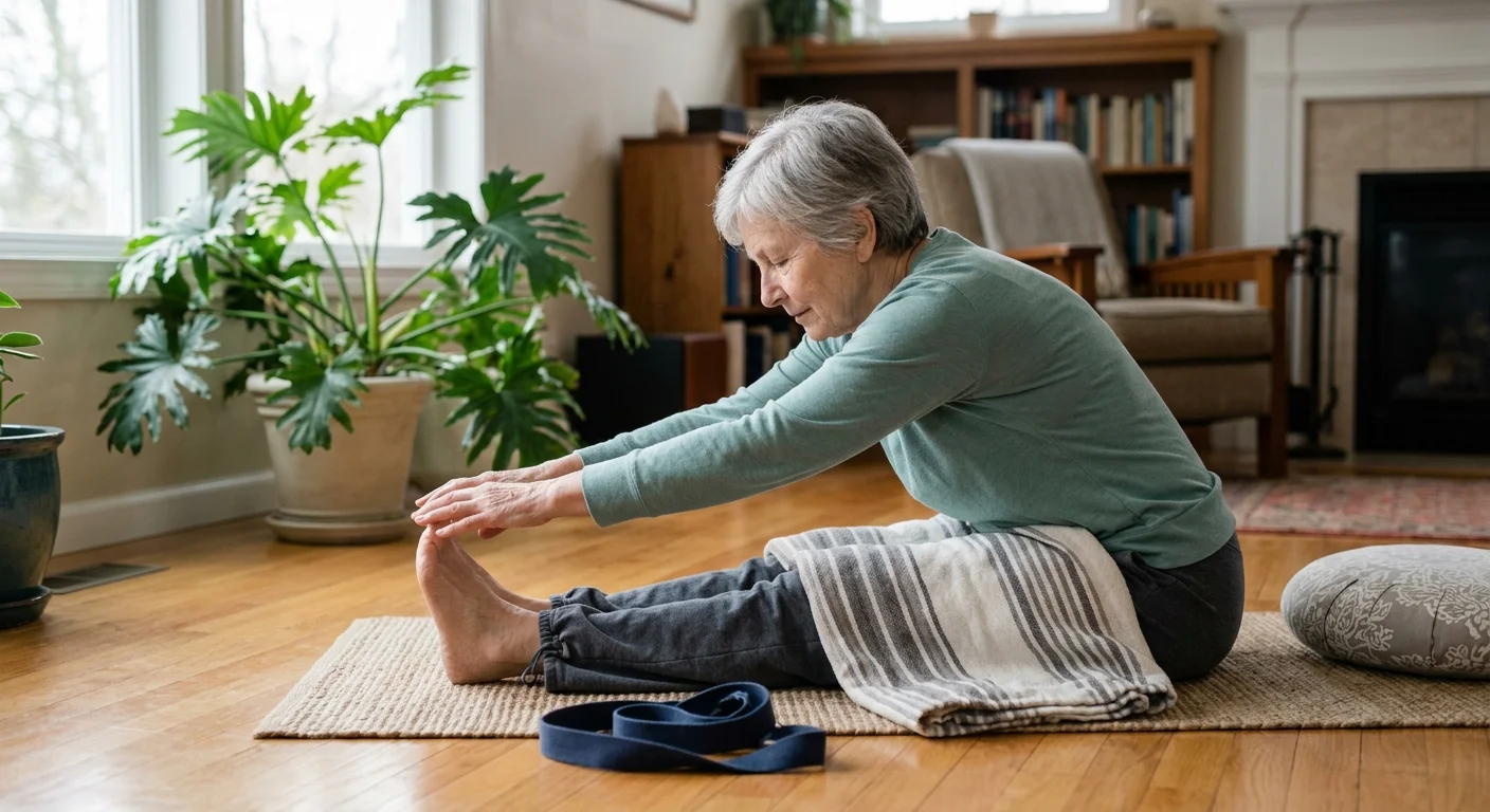 Ten to fifteen minutes is enough to start. An 8-week study found that just two yoga sessions per week improved muscle endurance and flexibility in older adults. Focus on slow breathing and gentle stretches — nothing forced, nothing rushed. As your body adjusts, ease toward 20–30 minutes. Randomized trials confirm this range improves walking speed and the ability to rise from a chair. Both are real markers of everyday independence.